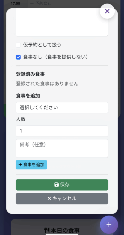 手動で予約登録をする。日付、入力者名を備考欄に記載。