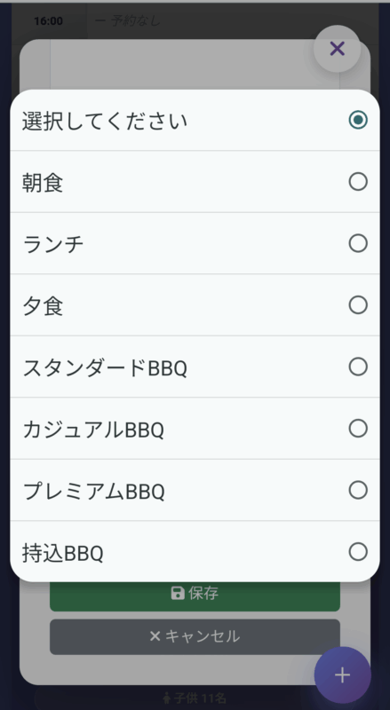 朝食付き→翌日の予約から食事内容を変更 - 食事内容の入力が完了し枠が黄色になっていることを確認
